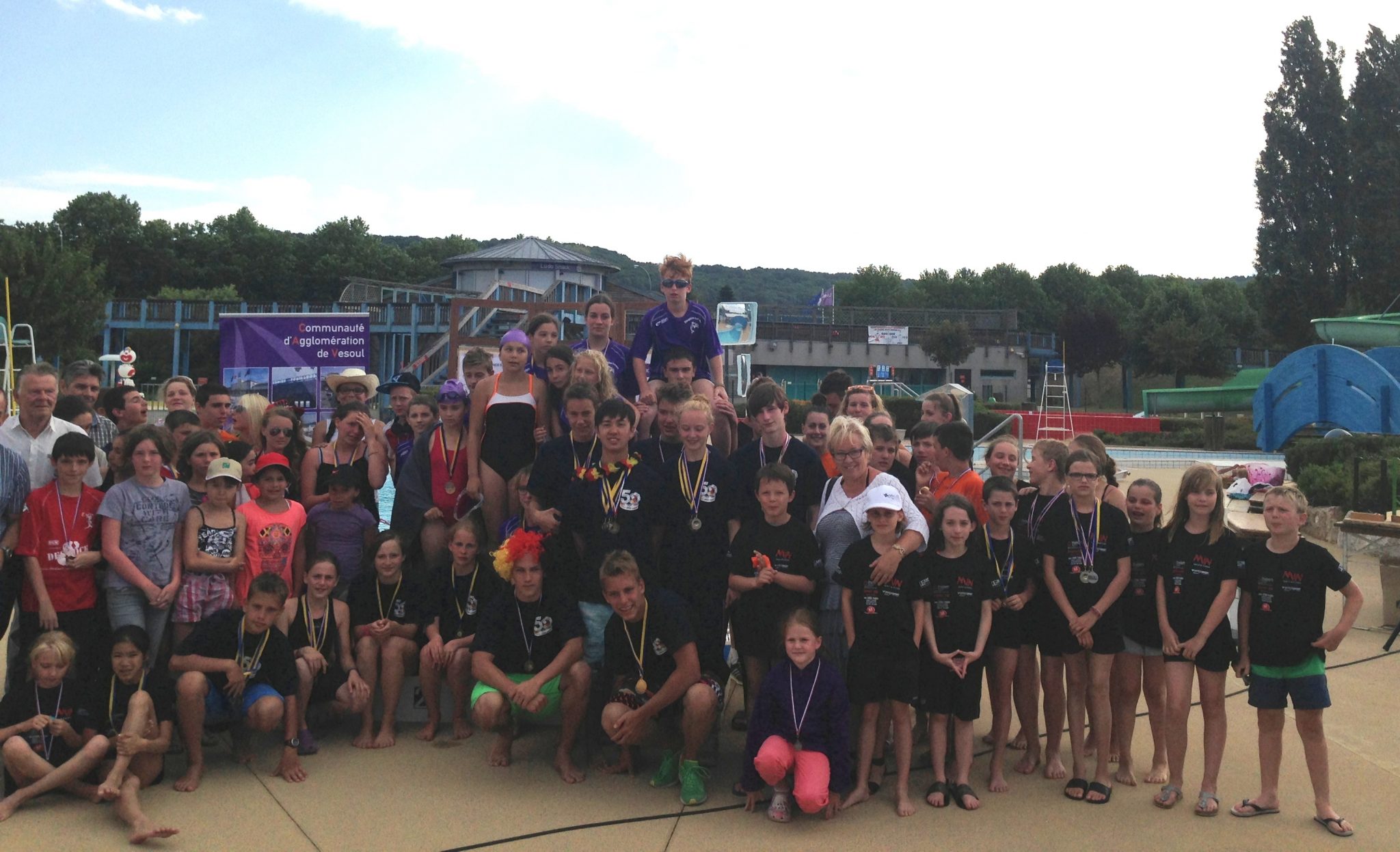 Dieses Jahr ist findet das 50jährige Städtepartnerschafts-jubiläum der Städte Vesoul und Gerlingen statt. Mitte Juni machten sich 15 Schwimmer/innen des SV Gerlingen nun auf den Weg in die Partnerstadt Vesoul, um dort am alljährlichen Meeting du LudOlac teilzunehmen und bei dem vom Vesouler Schwimmverein ausgerichteten Wettkampf den SV Gerlingen zu vertreten. Als Betreuer und Fahrer waren die Trainer Björn Eich und Jochen Essig mit dabei. Angekommen, wurden die Hütten auf dem Campingplatz bezogen und bei sommerlichen Temperaturen die erste Runde im angrenzenden See geschwommen. Nach einem ausgiebigen Abendessen durften die Spiele des zweiten WM-Tages nicht verpasst werden: ein eigens dafür mitgenommener Beamer und eine Satellietenschüssel waren schnell aufgebaut und dann konnte bei allen drei WM Spielen richtig mitgefiebert werden, bevor alle todmüde ins Bett fielen. Allerdings war die Nacht recht kurz: schon um 6.30 Uhr musste vor dem Wettkampf für Frühstück gesorgt werden.