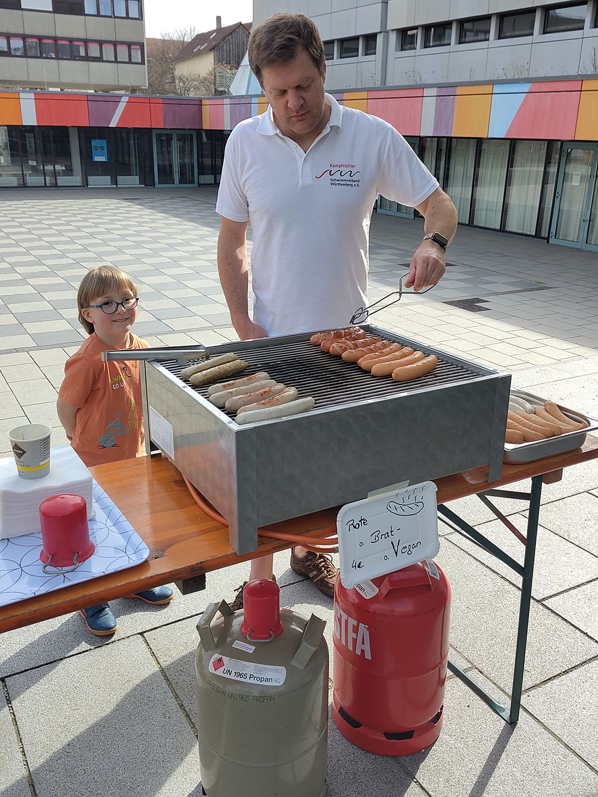 Verwöhnt werden alle Teilnehmer seit Jahren mit Speis & Trank. In diesem Jahr gab es neben Waffeln & liebevoll gebackenen Kuchen der Schwimmeltern eine Besonderheit, die sich großer Beliebtheit erfreute: Es wurde gegrillt – Rote Wurst, klassische Bratwurst sowie vegane Bratwurst stand auf dem Speiseplan und erfreuten sich großer Beliebtheit. Bei stahlendem Sonnenschein spielt das Wetter ebenso mit. Ein großes Dank an dieser Stelle an unsere Catering-Queen Martina & Grillmeister Timo!